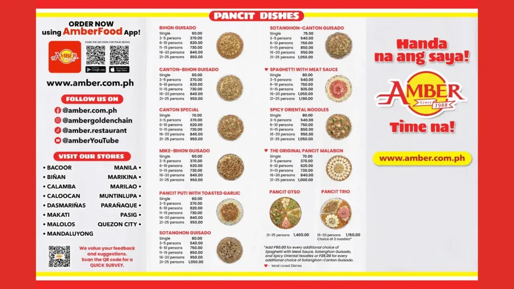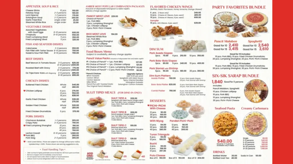 Understanding the amber menu price helps customers plan their meals and budgets before ordering. With affordable prices and tasty dishes, Amber continues to be a favorite choice for Filipino celebrations and everyday meals.